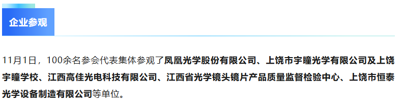 本次交流会得到江西省光学镜头镜片产品质量监督检验中心、江西高佳光电科技有限公司、上饶市恒泰光学设备制造有限公司、合肥知常光电科技有限公司、应用光学技术江西省重点实验室(上饶师范学院)等单位的大力支持。